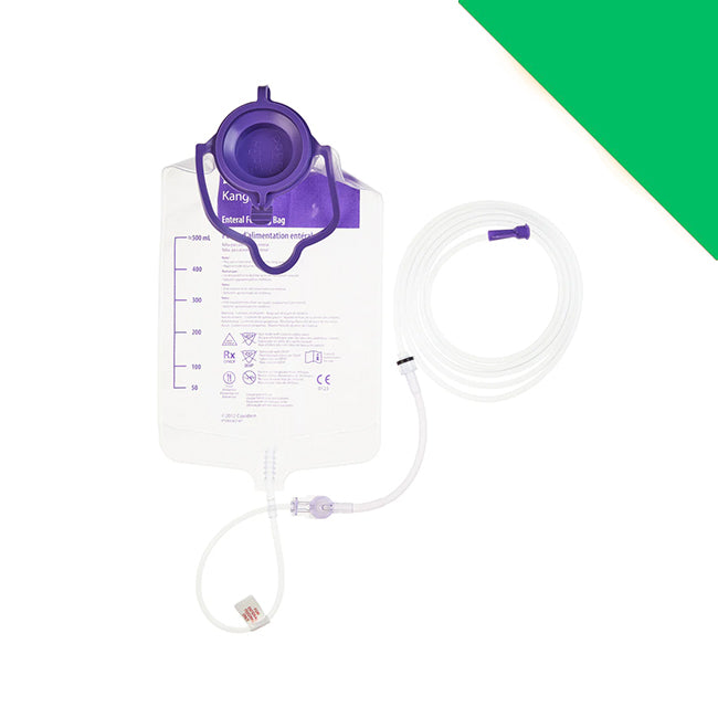 Kangaroo™ Feeding Sets are manufactured with ENFit™ connectors, ensuring compatibility with ISO standard 80369-3 and reducing the risk of medical device tubing misconnections. Kangaroo™ Feeding Sets are DEHP free and include anti-free-flow valves to prevent the backflow of feed in the tube.